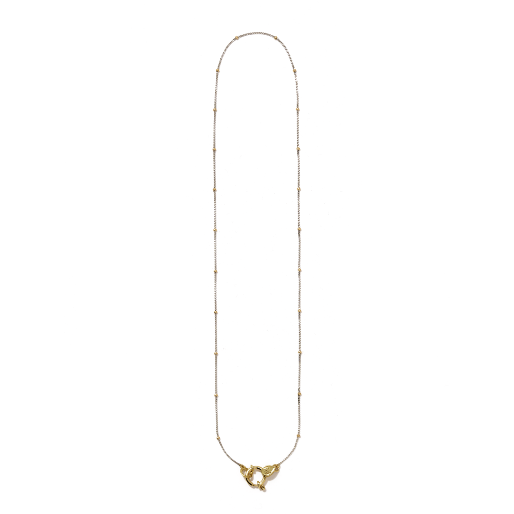 K18 イエローゴールドの球がリズムと輝きを添える、洗練されたチェーン。そのまま身に着けても、チャームを加えてアレンジしても美しく映える、エレガントなマストアイテムです。