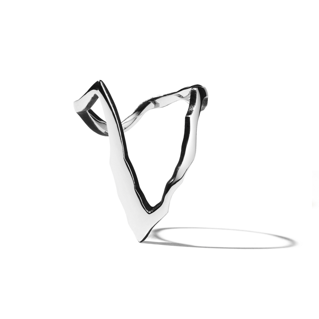 「人が金継ぎされている」というコンセプトのKINTSUGIシリーズの新作。ミラモアを代表するデザインとなり、今回はノワールプラチナとしてコレクションに加わりました。表面は光沢のあるプラチナ、側面はマット加工が施されたブラックロジウムコーティングで、金継ぎを連想させる躍動感のある深いV字ラインに渋さと重みが加わりました。指先をさらにモダンでユニークに演出します。