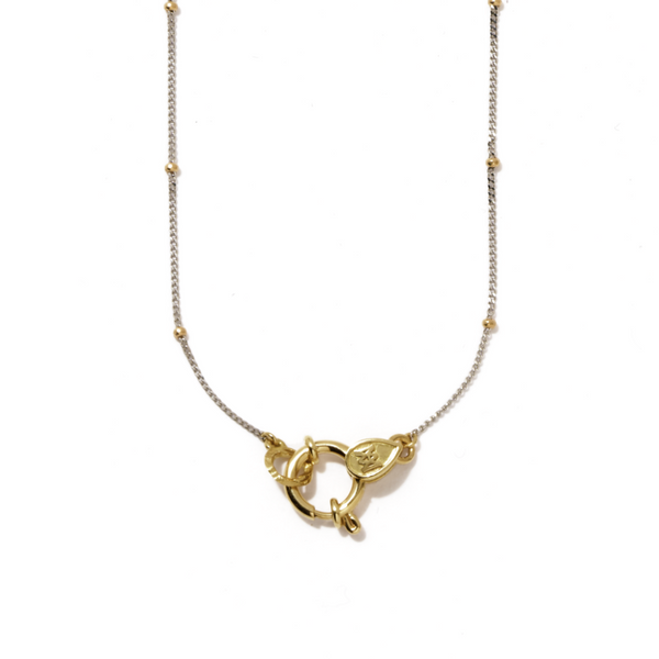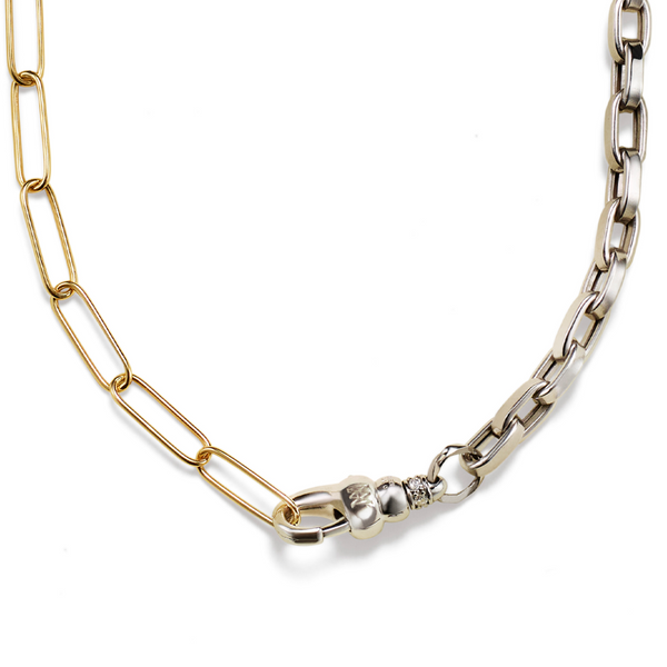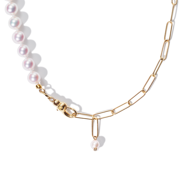 2019年のミラモア創設時からアイコニックなコレクションとして進化し続ける「DUO CHAIN」コレクション。懐中時計の鎖をモチーフにし、従来ではあまり組み合わせることがなかったイエロー&ホワイトの18金を使用。固定概念を打ち破り、スタイリングの自由を解放しました。チェーンが回転しても美しく見えるように、ロブスタークラスプには天然ダイヤモンドがさり気なく輝き、職人技も細部で光ります。チェーン一本で、クラスプを前にして、留める位置を変えて、重ね付けをして、チャームをつけて・・・とスタイリングは自由自在。あなたを彩る無限の楽しみ方をデュオチェーンで発見してください。