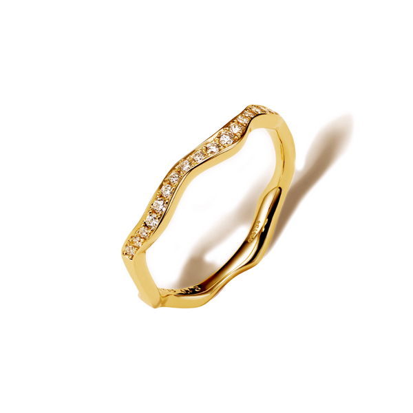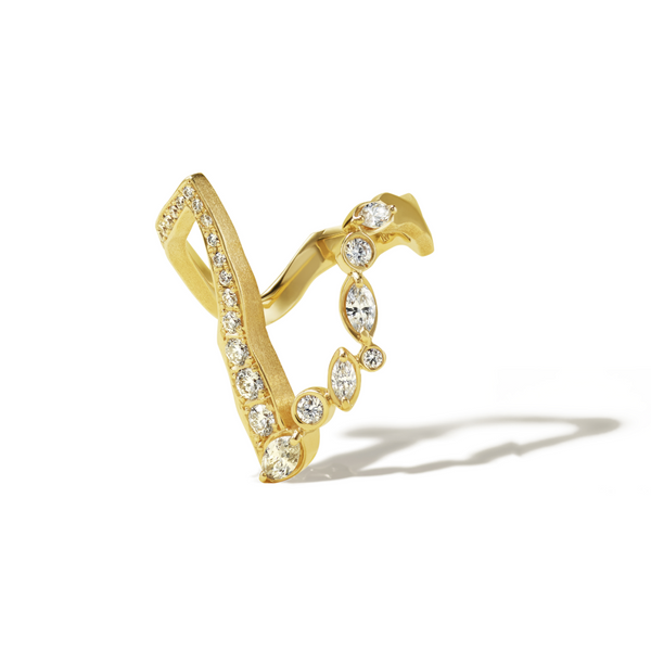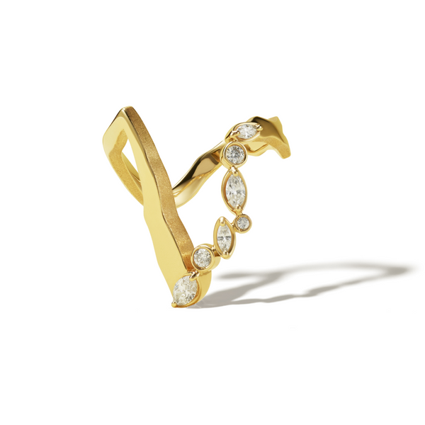「KINTSUGI」コレクションは、再生の美学をジュエリーによって表現しました。このコレクションは、割れた陶磁器を漆で修復し、金粉で継ぐ、日本古来の技法「金継ぎ」からインスピレーションを得たもの。私たち一人ひとりが持つコンプレックスや「壊れた部分」を受け入れ、それを隠すのではなく、ジュエリーを身につけることで美しく継ぎ合わせ、個々の自分らしさを紡ぎ出す哲学を込めました。日本の職人による手仕事から生まれた18金の繊細かつダイナミックな金継ぎラインは、身につけることで「ジュエリーで継がれる」という新しい美しさを約束します。ミラモアは、傷を持ちつつも生きる姿にある強さと魅力の本質を讃えます。